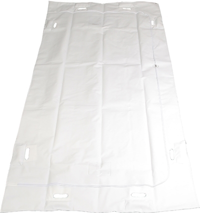The Bariatric body bag is made from ultra heavy duty white PEVA heatsealed material (450 micron) with welded seams and a U-shaped zip opening. The product is fluid retentive and can accommodate a weight of up to 310kg. It also has 2 document pockets for notes/ID and 8 grab handles to assist with transportation.