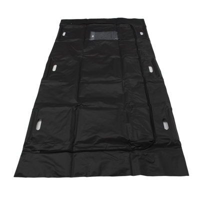 The heavy duty body bag is made from heavy duty black PEVA (320 micron) with U-shaped zip and 6 integrated wooden handles. Includes a clear plastic pouch for documents.