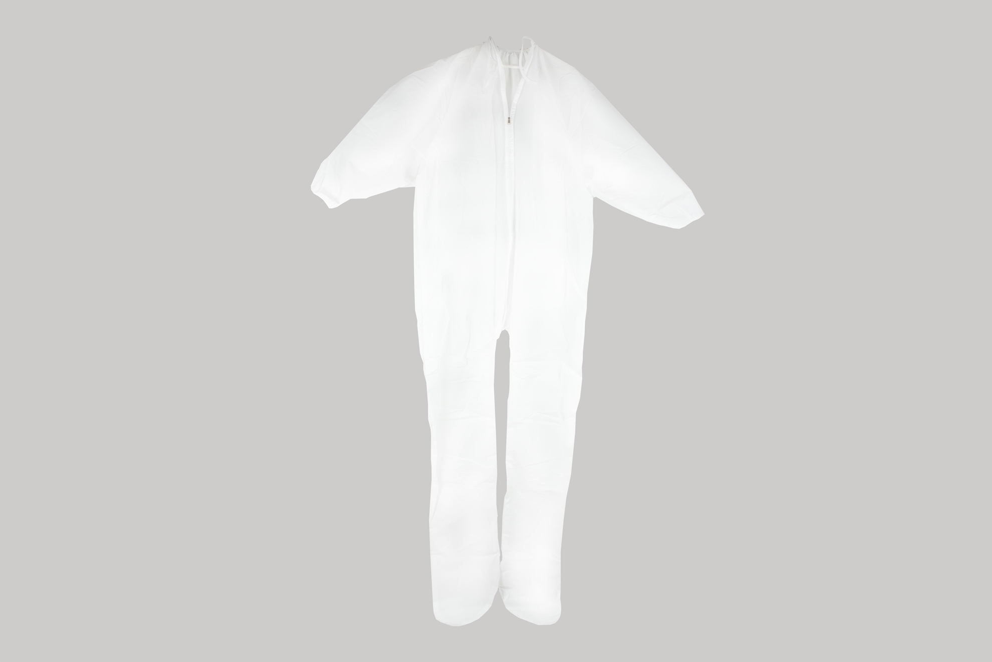 A Moisture proof barrier with electronically sealed seams. It comes in opaque white with zipped front & ties, elastic banding at neck and wrist for complete closure & secure fit.